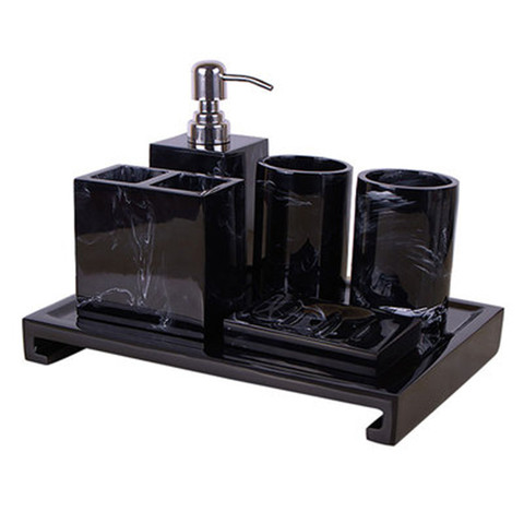 Buy Online Black Marble Pattern Tray Resin Bathroom Set Toothbrush Holder Soap Dispenser Soap Dish Men S Bathroom Accessories Set Home Deco Alitools