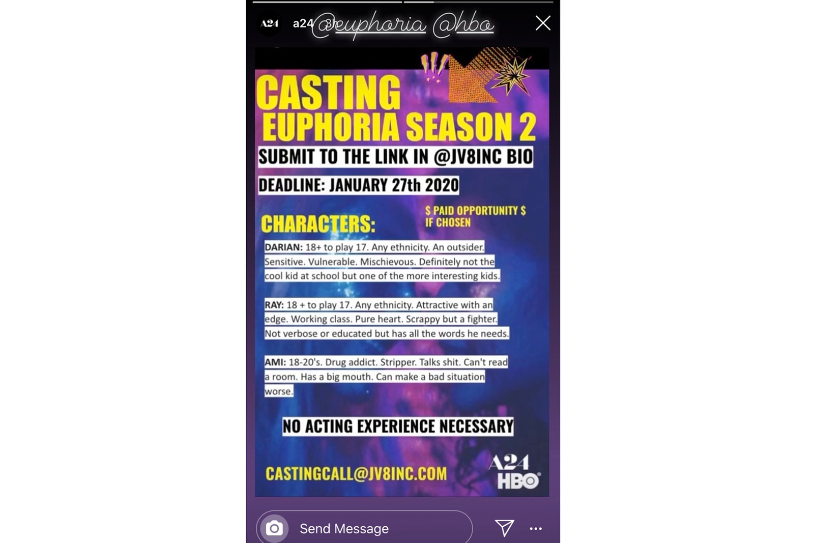 Idk If This Casting Call Is Real From Tumblr Euphoria